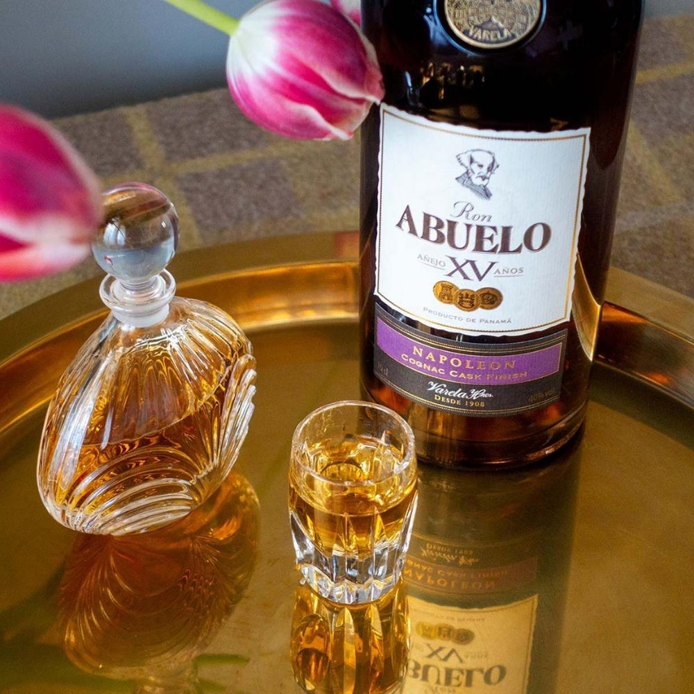 Ron Abuelo XV Napoleon Cognac Finish es una edición limitada que combina la tradición del ron panameño con la elegancia del envejecimiento en barricas de roble francés que anteriormente contuvieron coñac, aportando un carácter sofisticado y refinado.