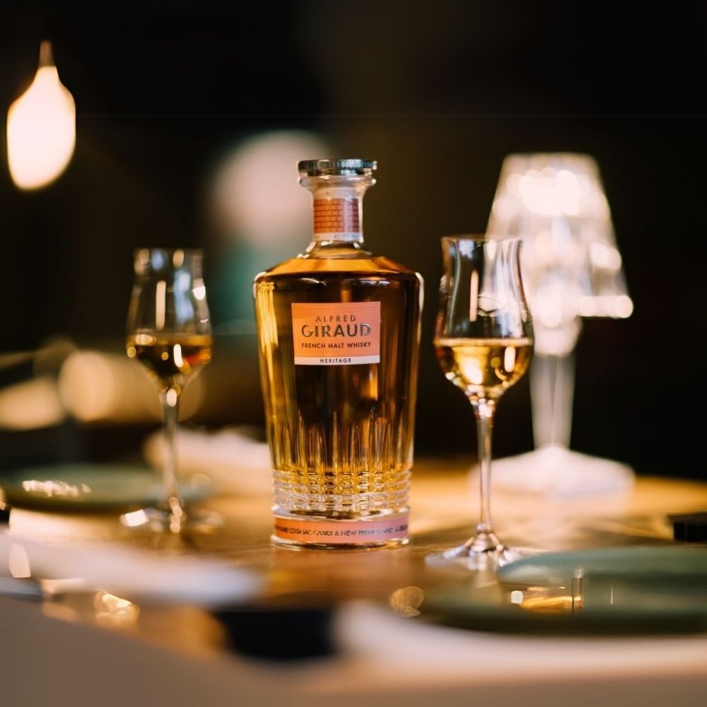 Alfred Giraud «Heritage» es un whisky francés excepcionalmente refinado, que rinde homenaje al legado familiar de los Giraud, expertos en tonelería y en la elaboración de coñac. Este whisky se compone de una mezcla de whiskies de malta envejecidos en barricas de coñac y roble francés de varios usos.