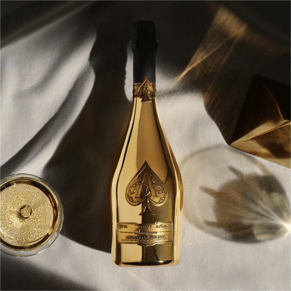 El Armand de Brignac Brut Gold, nacido de la colaboración entre el rapero estadounidense Jay-Z y la histórica Maison Cattier, es un champagne que se distingue tanto por su excelencia como por su icónico diseño con el emblema del As de Pique.