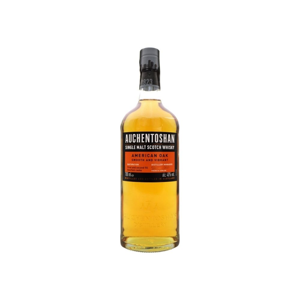 Auchentoshan American Oak es un single malt escocés suave y accesible, procedente de las Lowlands y madurado exclusivamente en barricas de roble americano que previamente contuvieron bourbon. Esta maduración le aporta un perfil aromático luminoso y cremoso.