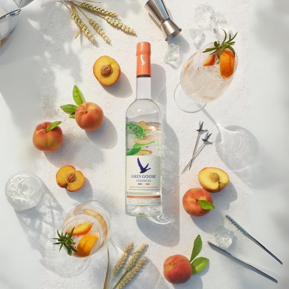 Grey Goose Essence White Peach & Rosemary es una expresión exquisita de vodka infusionado con las mejores frutas e ingredientes botánicos. Este destilado combina los suaves y florales aromas del durazno blanco con un toque sutil de romero salado, creando un perfil de sabor naturalmente delicado y refrescante.