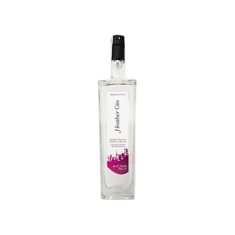 Heather Gin London Cut es una ginebra británica Premium producida por Knockeen Hills Heather Gin Ltd. de tipo London que es destilada cinco veces de manera tradicional por lotes.