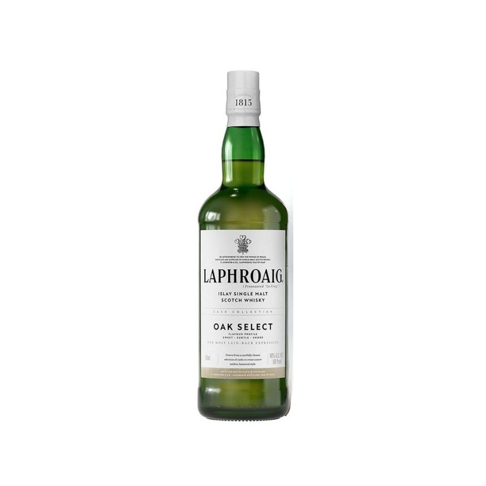 Laphroaig Select Oak es un whisky escocés de la región de Islay que destaca por su carácter profundamente ahumado y medicinal, equilibrado por un envejecimiento en una combinación de barricas cuidadosamente seleccionadas: roble americano, roble europeo, barricas de oloroso, barricas nuevas de roble blanco americano y barricas tradicionales de Laphroaig.