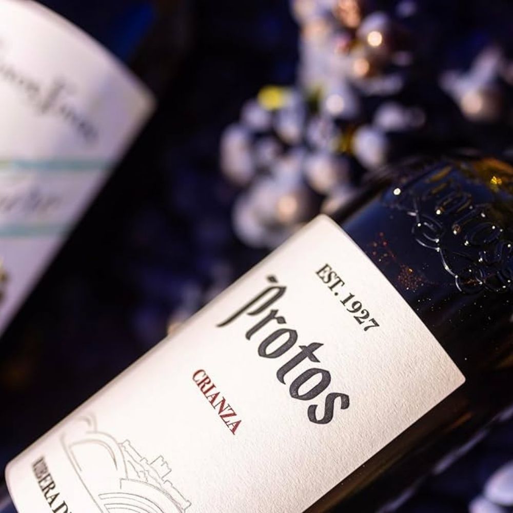 Protos Crianza 2019 es un vino que encarna la esencia de la Ribera del Duero, elaborado exclusivamente con Tempranillo procedente de viñedos de más de 25 años. Su crianza de 12 meses en barricas de roble francés y americano, seguida de otros 12 meses en botella, le confiere una estructura y complejidad notables.
